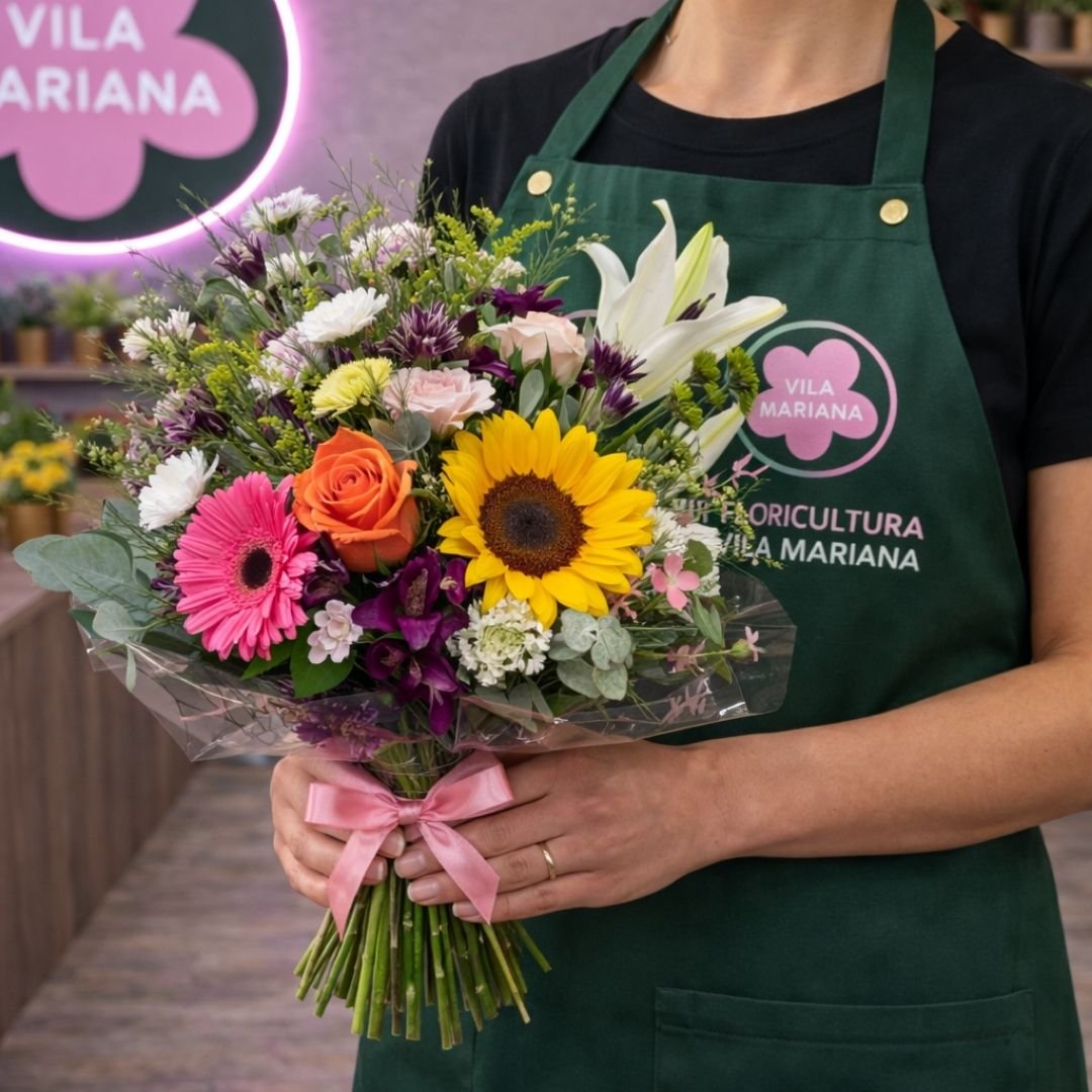 Flores do Campo – Médio com mix de flores coloridas, montagem artística e folhagens selecionadas.